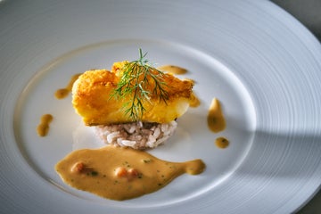真鱈のポワレ ウニ風味のバター仕立てリゾット添え