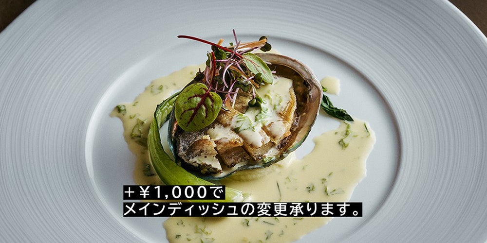※+¥1,000のご追加で、「蝦夷鮑のポワレ 生海苔バターソース」へ変更承ります。お口直しのグラニテ