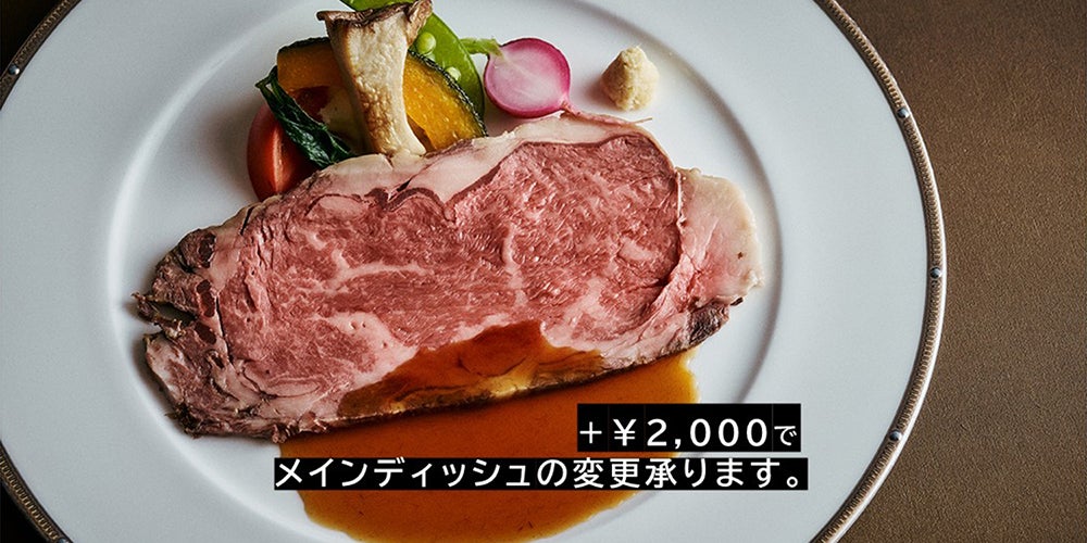 ※+¥2,000のご追加で、「国産牛のローストビーフ 和風ソース」へ変更承ります。春苺のタルトと桜のパンナコッタ